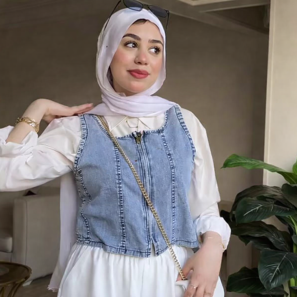 Trendy denim top with zipper